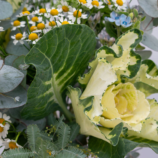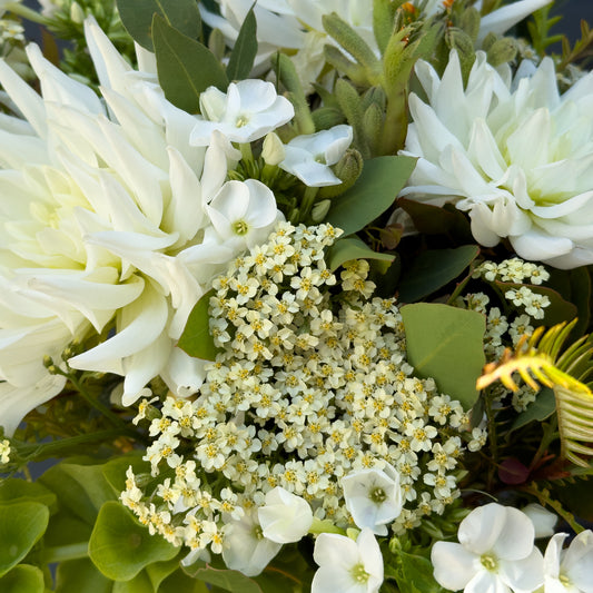 זר לבן וירוק עם נגיעות של צהבהב