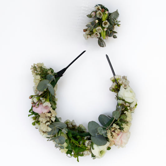 זר לראש לבן עם נגיעה של סגלגל