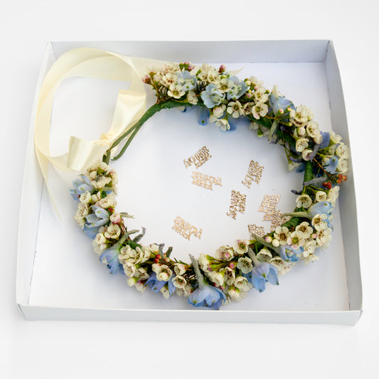 זר לראש תכלת ולבן