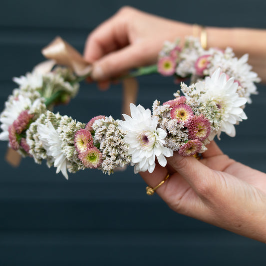 זר לראש ורוד, תכלת וחרצית
