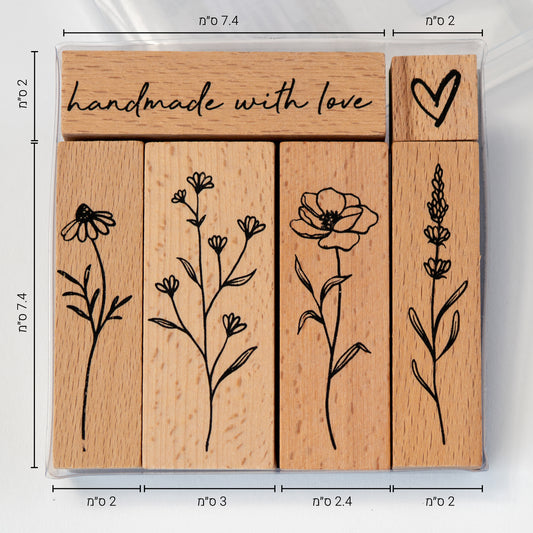 סט 6 חותמות גומי ועץ פרחוניות