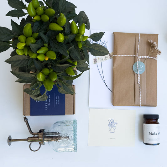 מארז מתנה - "פינה ביתית - עציץ עונתי"