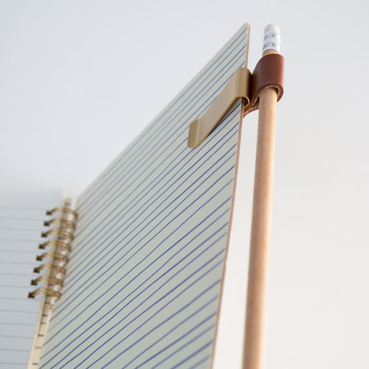 קלמר חום עם רצועת גומי להצמדה לספר או מחברת