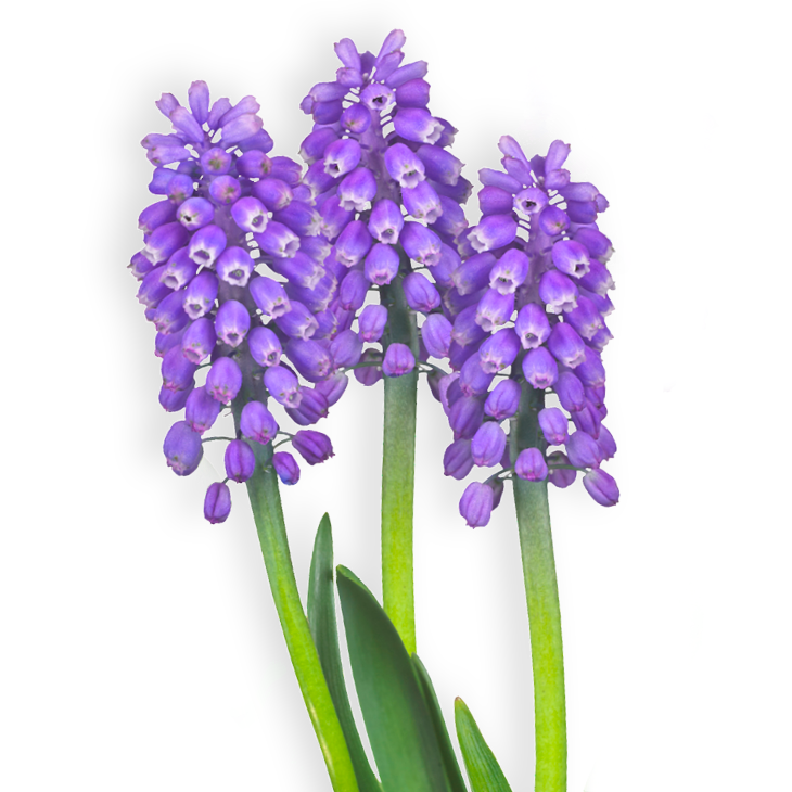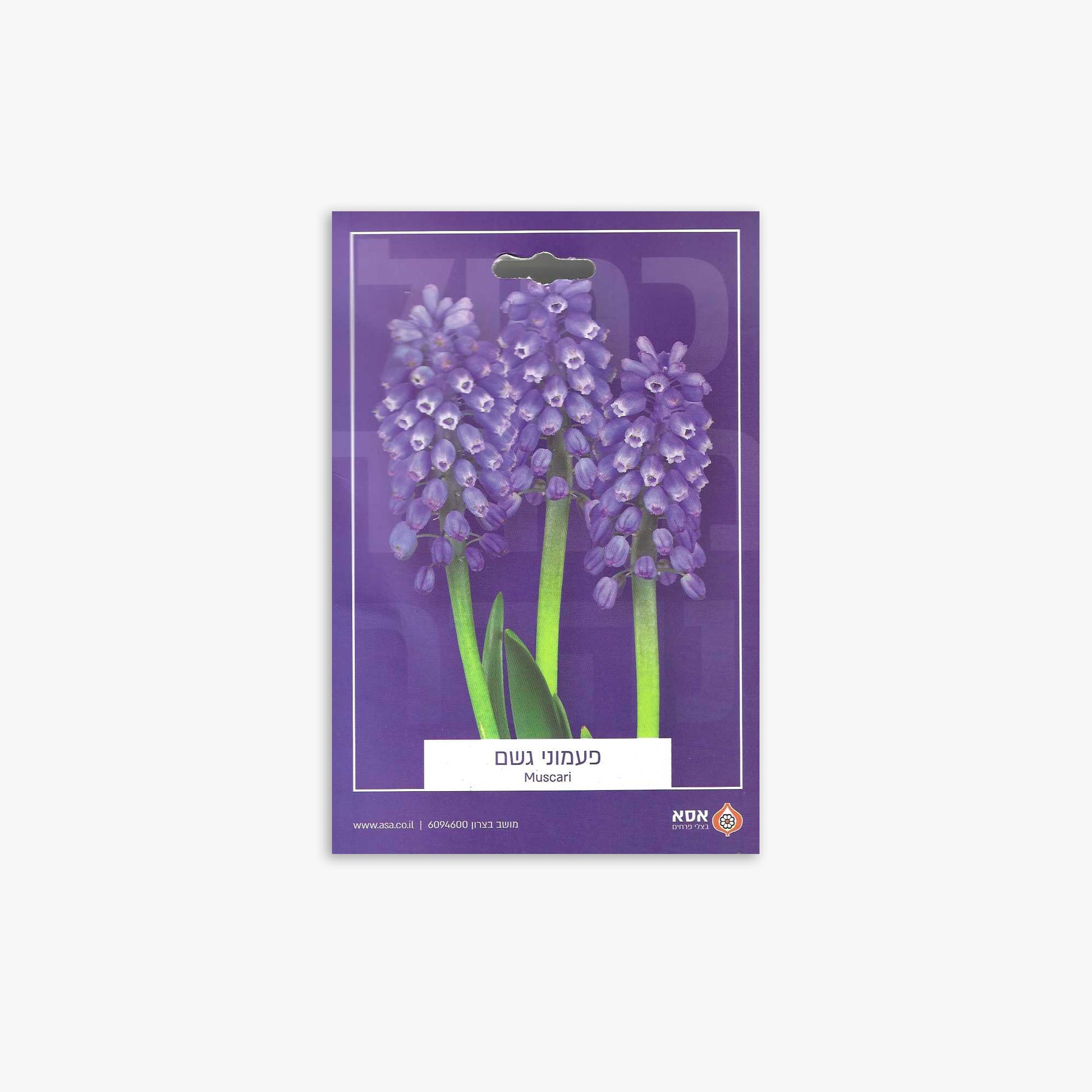פעמוני גשם (Muscari) – אשכולות פריחה סגולים־כחלחלים שמכניסים אביב לכל עציץ או גינה.
