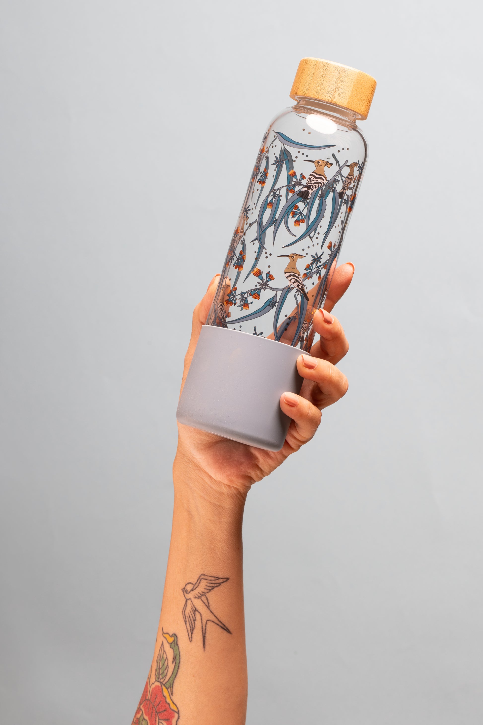 בקבוק שתייה מעוצב עם איורים מקוריים בשילוב פויל מוזהב ועדין מתוך הקולקציה המקומית שלנו, שמעמידה במרכזה בעלי-חיים וצמחים ארצישראליים שהם חלק בלתי נפרד מנוף ילדותינו. הבקבוק עשוי מזכוכית בורוסיליקט (זכוכית עמידה וקלה), נסגר בהברגה עם מכסה עץ בהיר וכולל גם שרוול סיליקון המולבש על חלקו התחתון כדי לספק יציבות מירבית והגנה על הזכוכית בהנחת הבקבוק. הבקבוק יהיה שדרוג נהדר לשגרת המים שלך במשרד או בבית ואולי אפילו יגרום לך לשתות יותר במהלך היום :)
