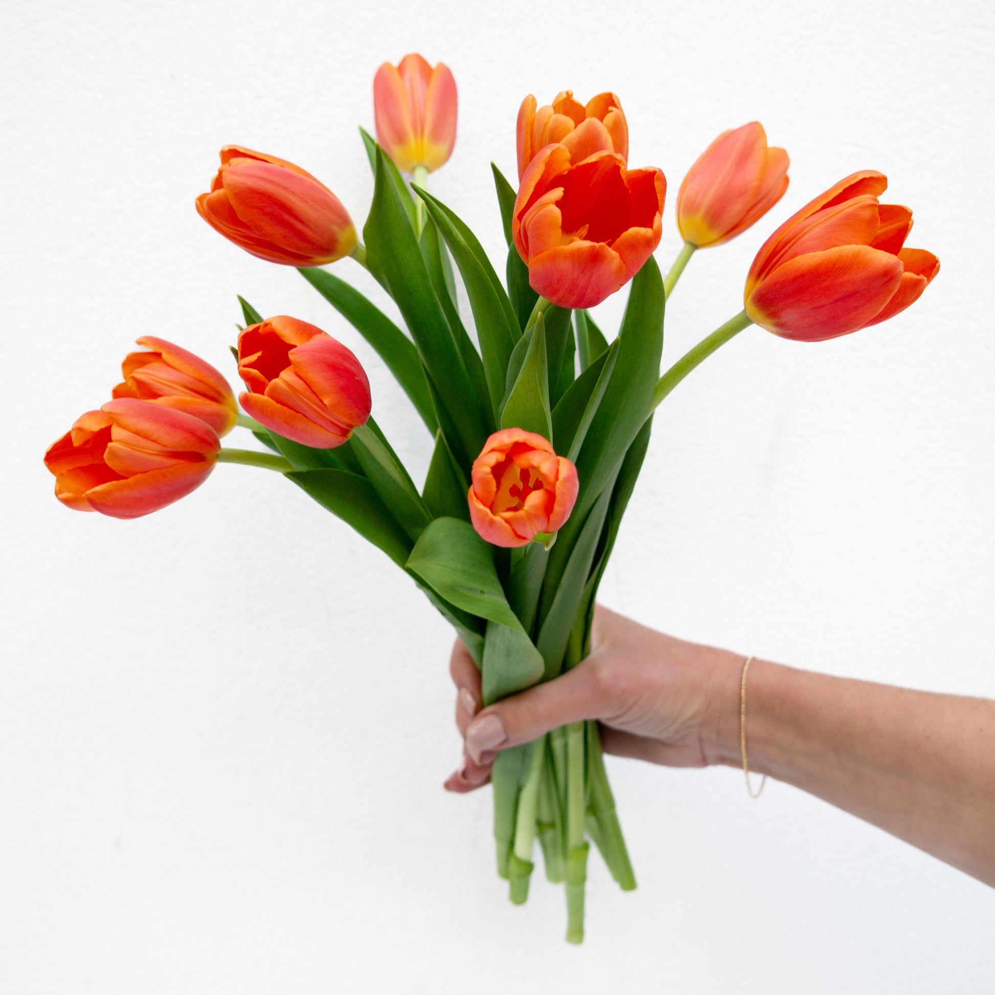 זר חורף עונתי של טוליפים (צבעוני) בגוון אחיד