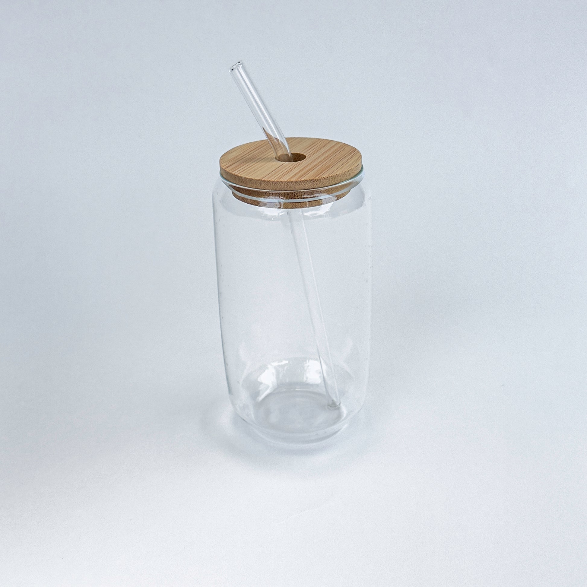 כוס זכוכית עם מכסה במבוק וקשית זכוכית