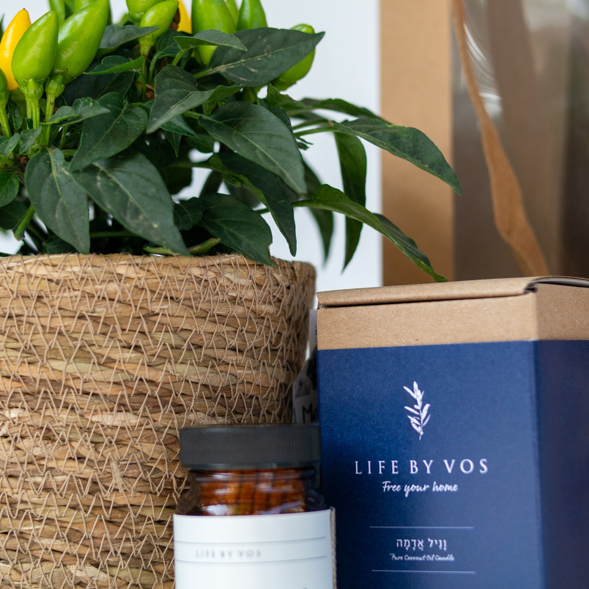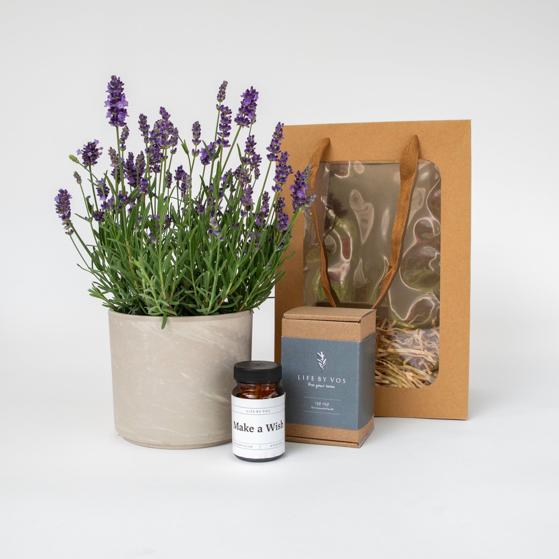 - לבנדר בכלי אפור בהיר דמוי בטון