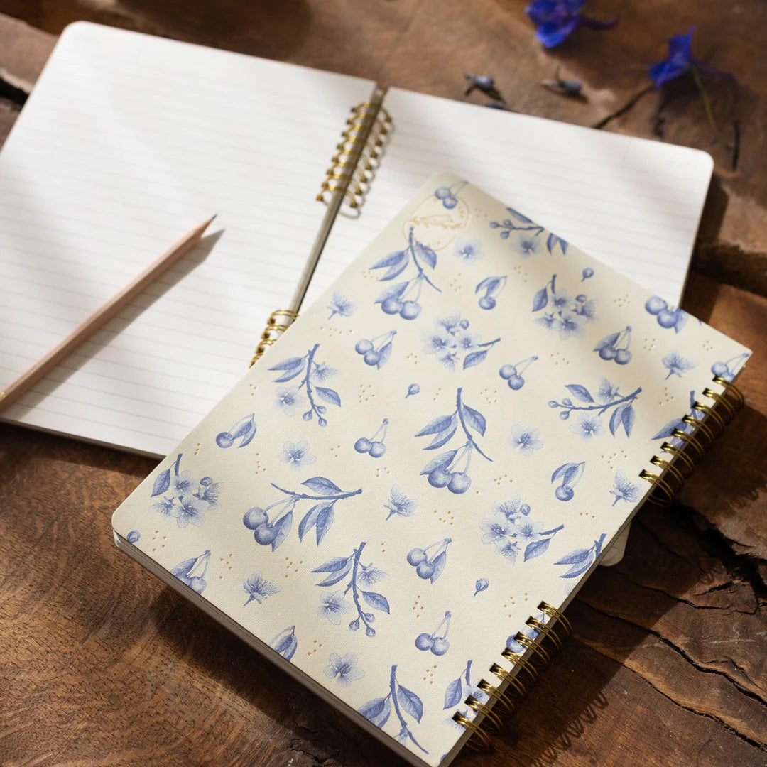 מחברת ספירלה מתוך מיני-קולקציית "Backyard Porcelain" המקורית שנוצרה מצבע מים כחול - שפופרת אחת של צבע ומאות גוונים שיוצרים עומק מורכב שמצליח להציג זכרונות בוטניים של ילדות מקומית באופן פשוט ונקי.
