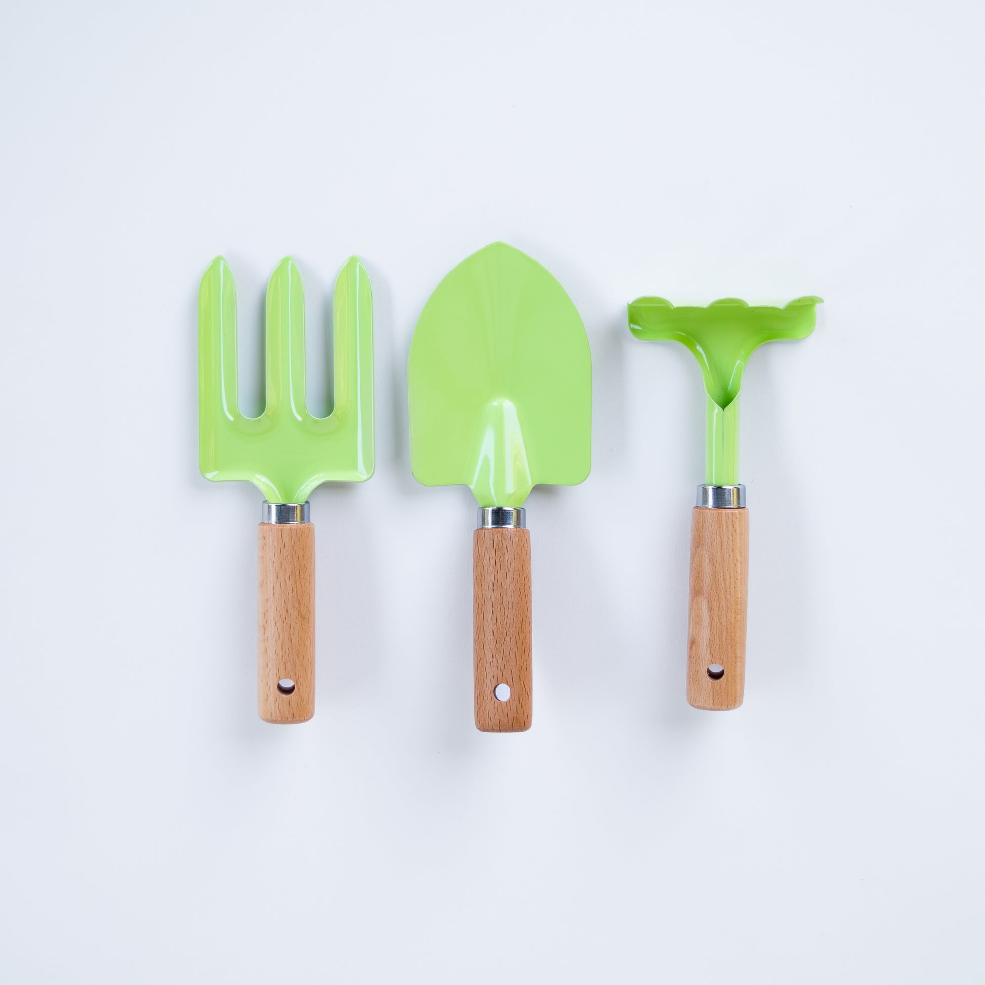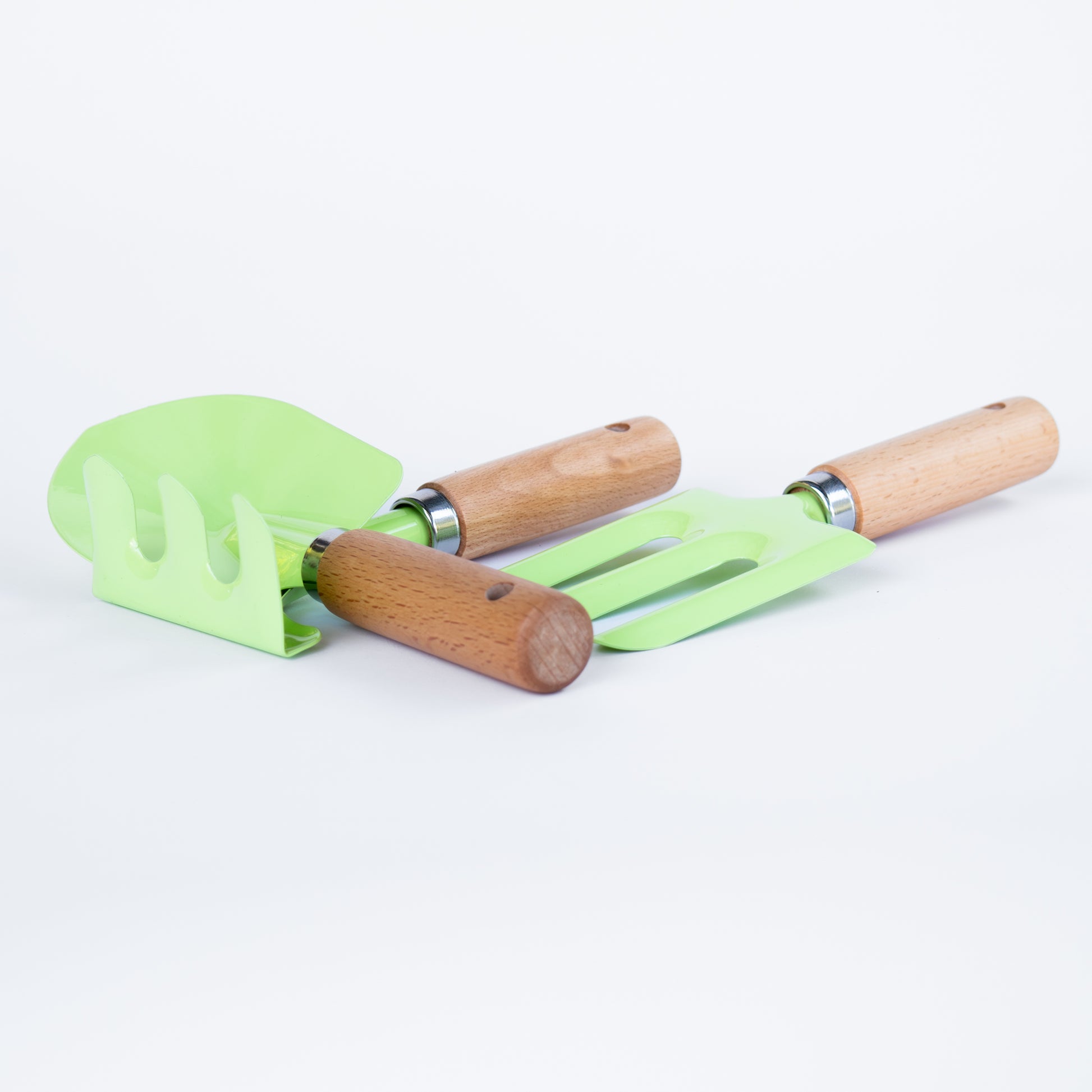 סט כלי גינון לילדים - 3 חלקים עם ידיות עץ
