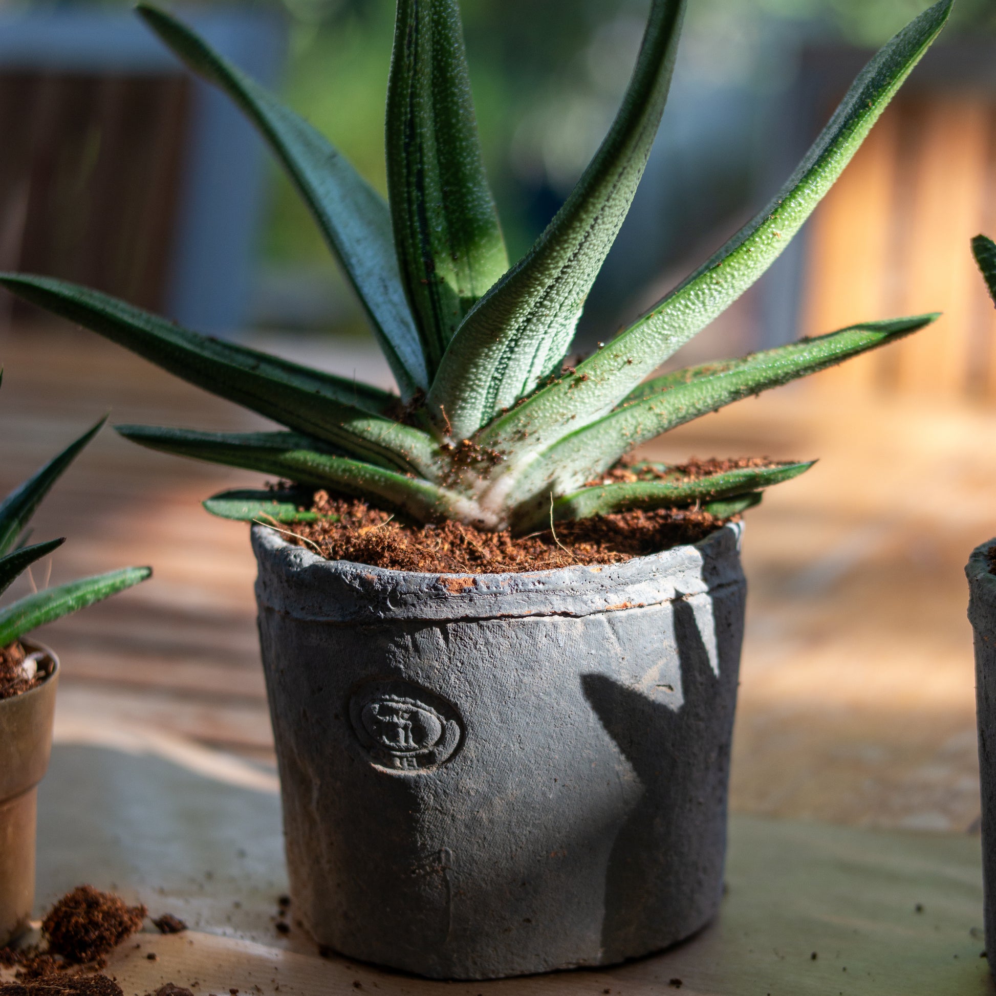 סקולנט בכלי חרס אפור דמוי בטון