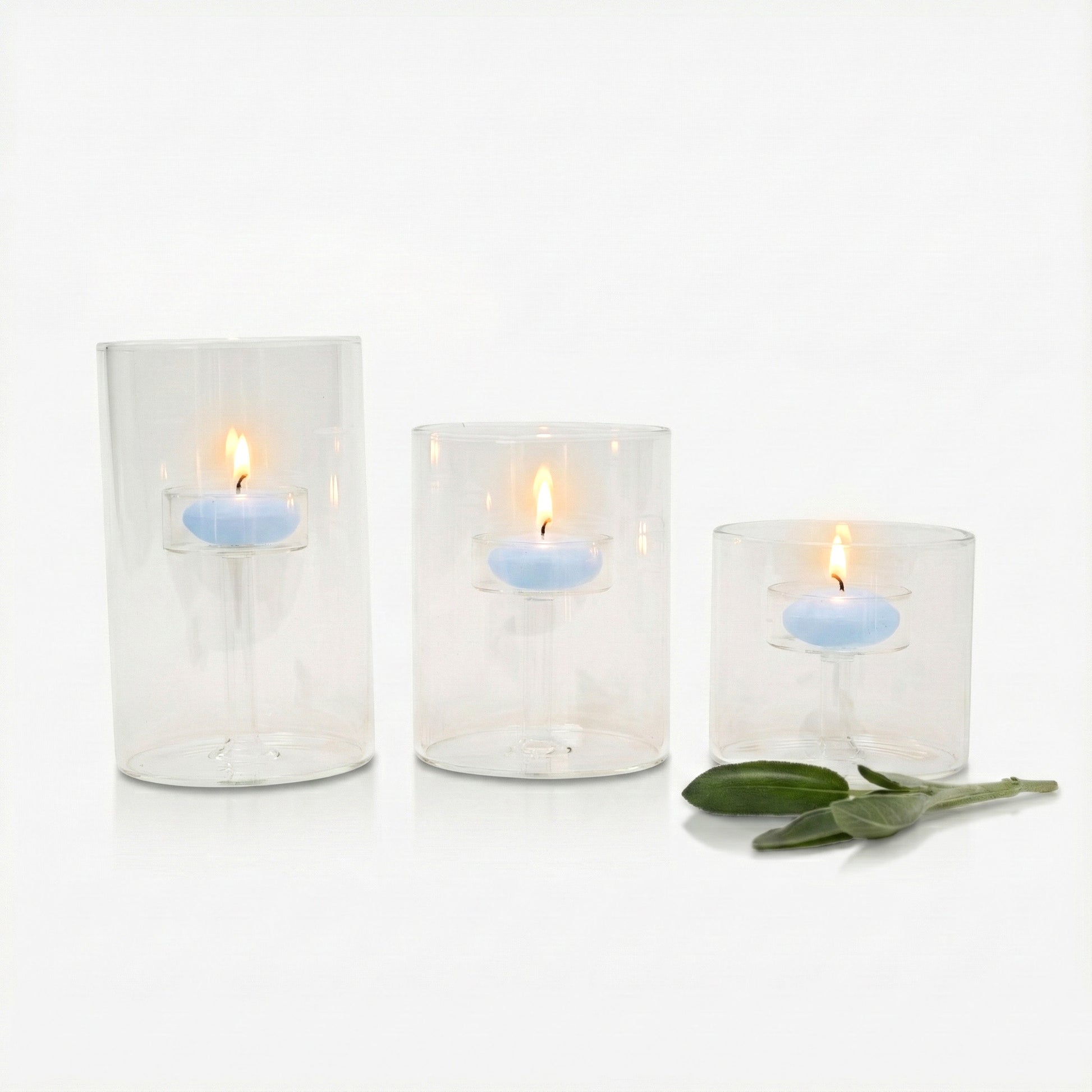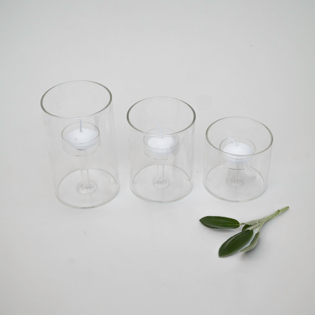 שלישיית פמוטי זכוכית דקורטיביים בגבהים משתנים