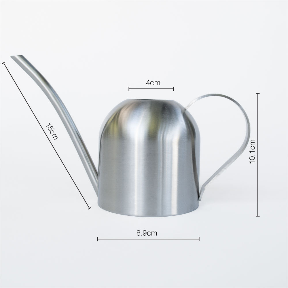 משפך השקיה קטן בעיצוב מודרני, עשוי נירוסטה כסופה עם זרבובית ארוכה ודקה להשקיה מדויקת. מתאים במיוחד לצמחי פנים, סוקולנטים ועציצים קטנים. קל, נוח לשימוש ועמיד לאורך זמן.